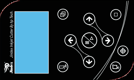 ⑧大液晶實(shí)時(shí)動(dòng)態(tài)顯示噴繪和切割狀態(tài),可以在此調(diào)整刀壓并且切割刀畫重合噴墨測(cè)試復(fù)位,停止方便進(jìn)紙退紙功能設(shè)置切完后斷紙等功能。