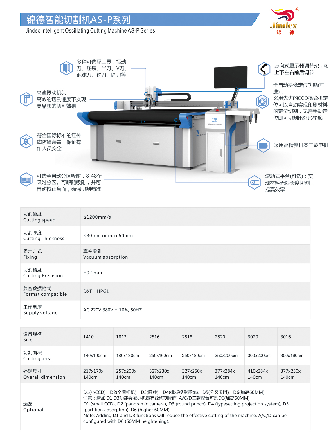 The machine has function head optional: vibration knife, round knife, V scissors, V knife, creasing wheel and drawing pen, etc.It can cut asbestos gasket, rubber gasket, honeycomb board, plastic corrugated board, plastic hollow board, grey board, composite material, rubber board, pearl cotton and EVA board etc.